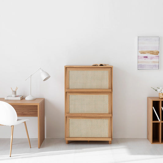 BENTAN 雑誌収納付きラタンチェスト|3扉