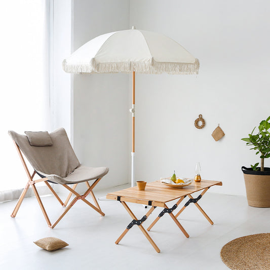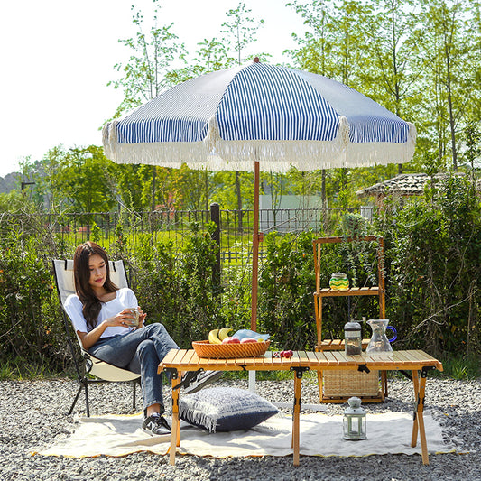 ROMIL タッセルパラソル ブルーストライプ|角度調整・防水・UV機能付き