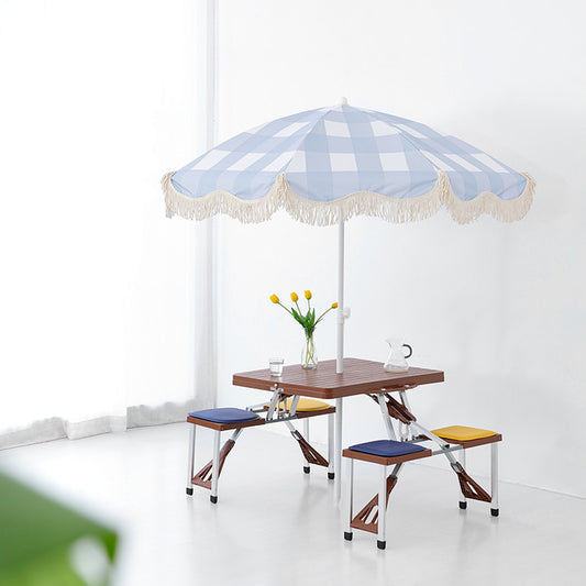 ROMIL タッセルパラソル スカイブルーパターン|角度調整・防水・UV機能付き