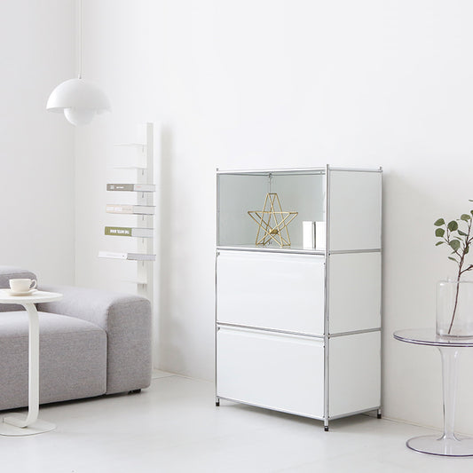一方、洗練されたホワイトのスチールキャビネットは、モダンで清潔感のある空間づくりにも最適です。