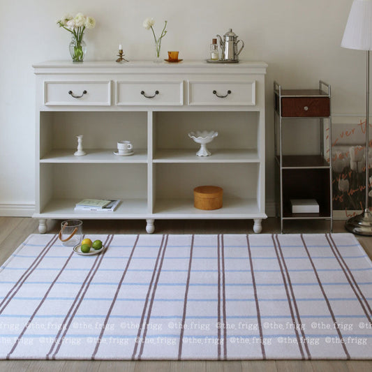 ストライプウォッシャブルラグ|(ブルー&ブラウン)