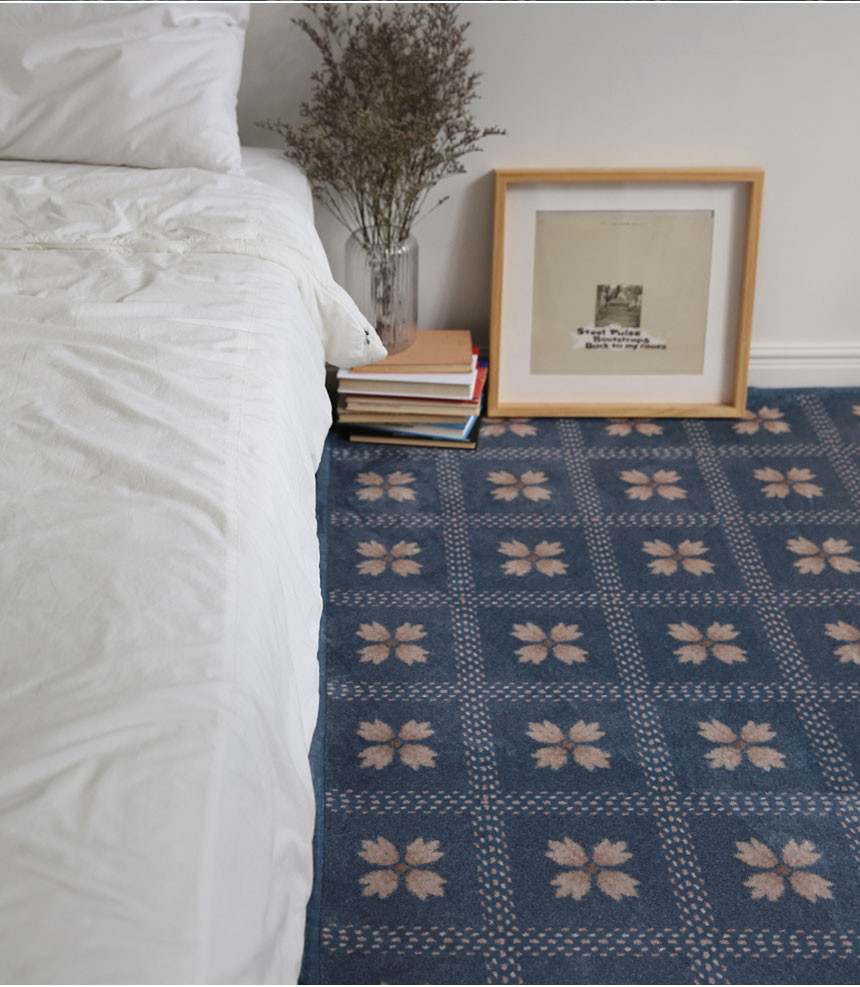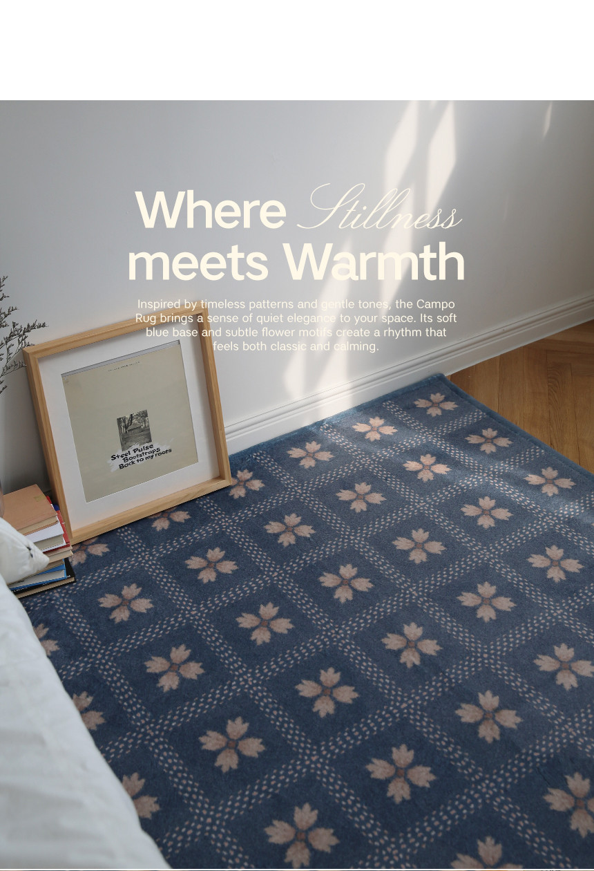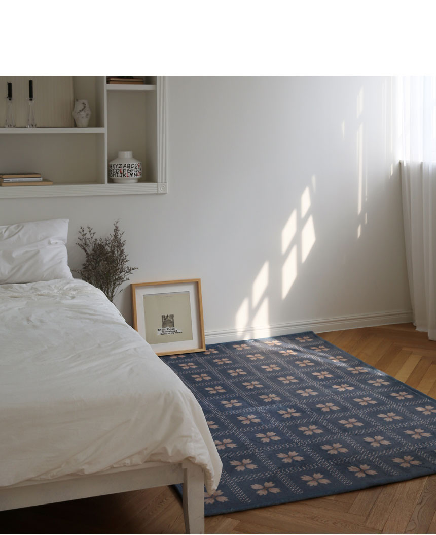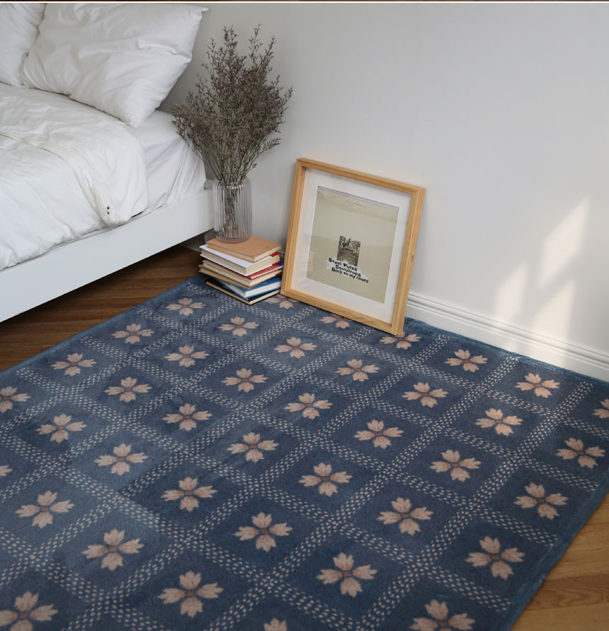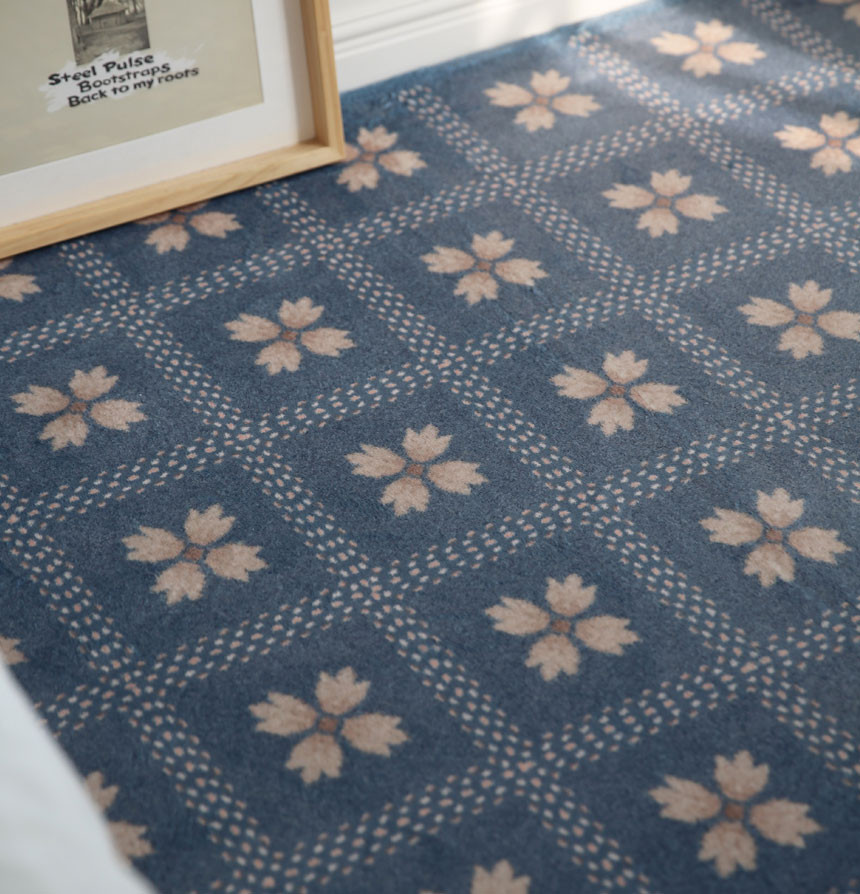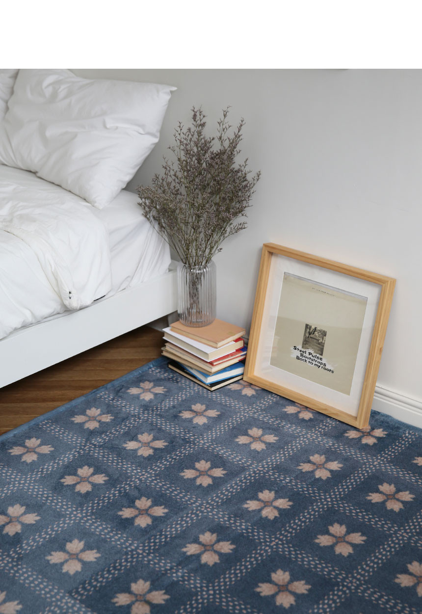 穏やかなフラワーパターンが、クラシカルな雰囲気を演出するラグです。