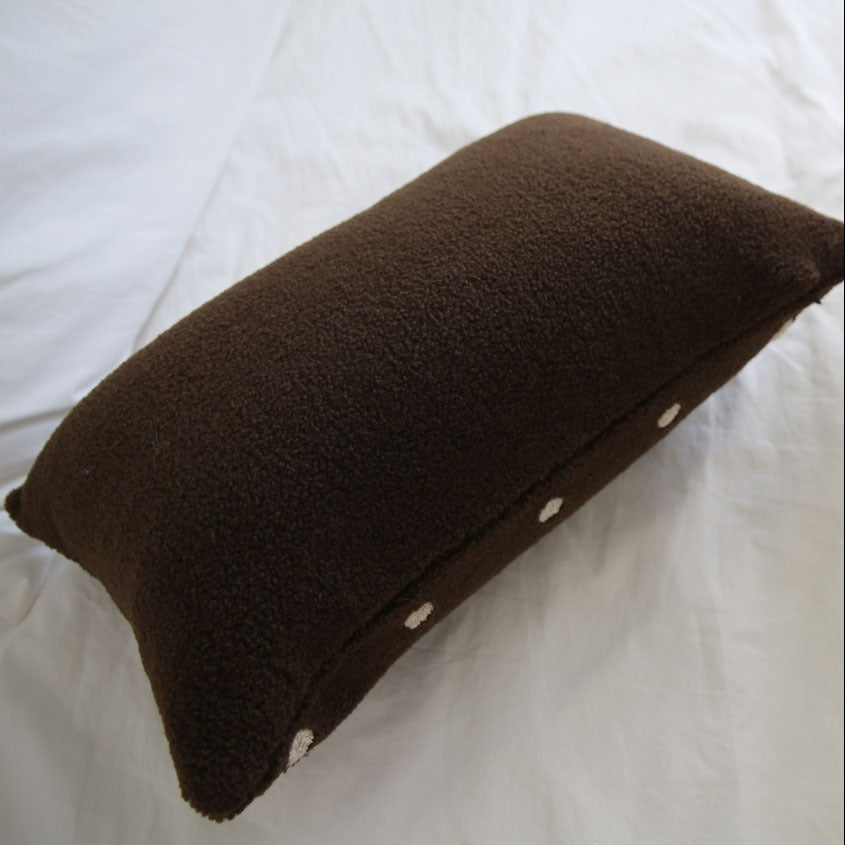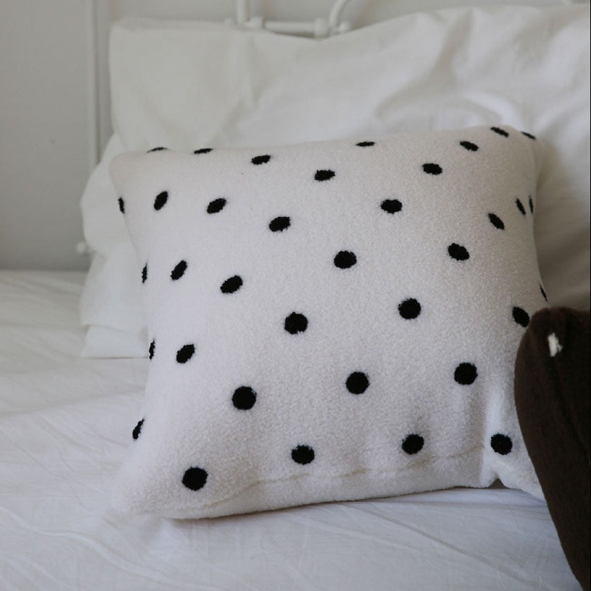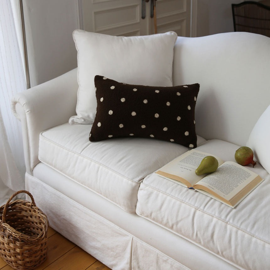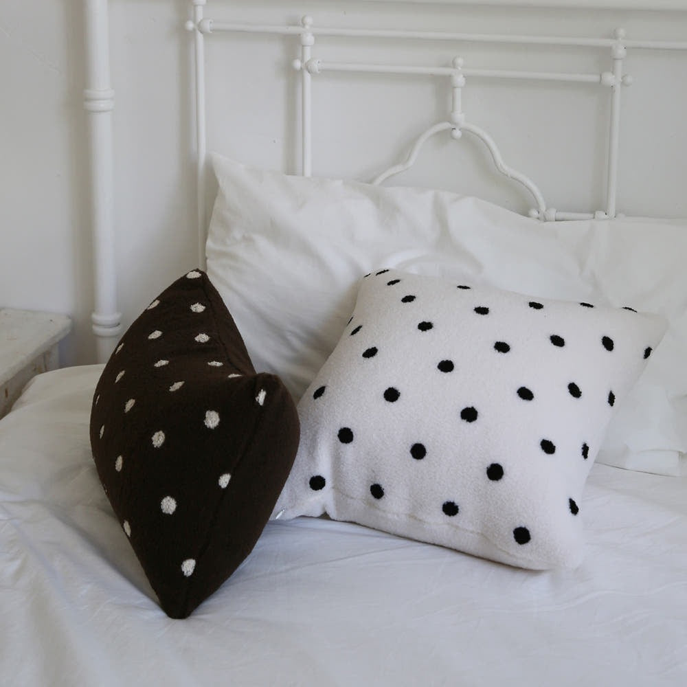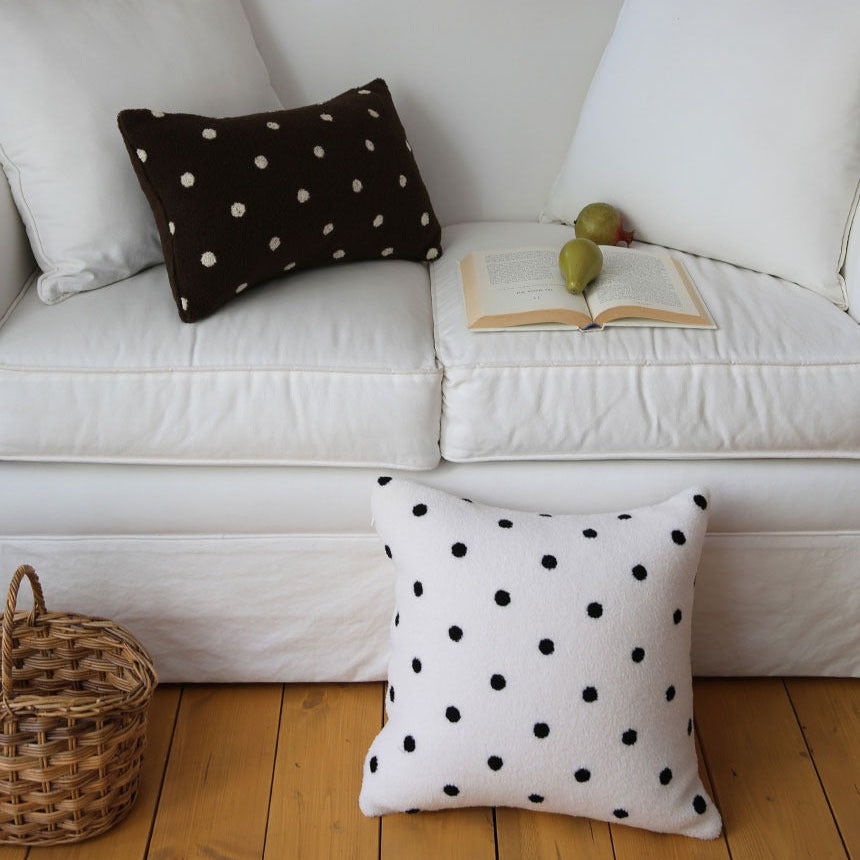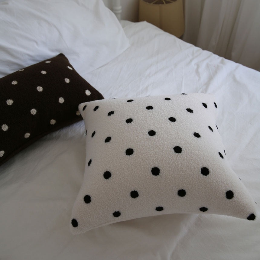小さなドット模様が可愛らしい印象を与えるクッションです。