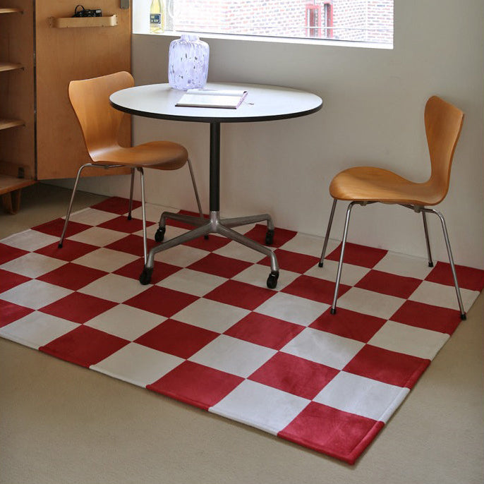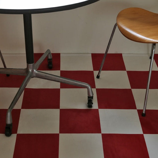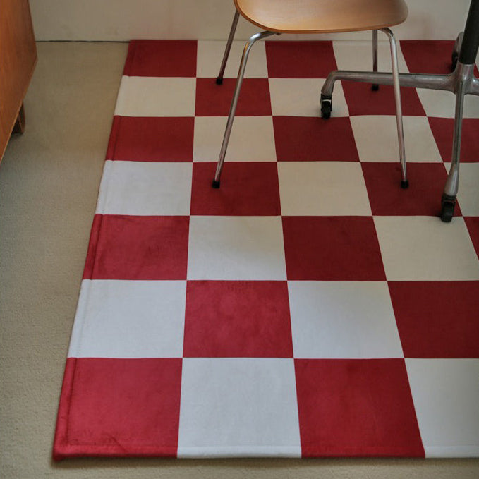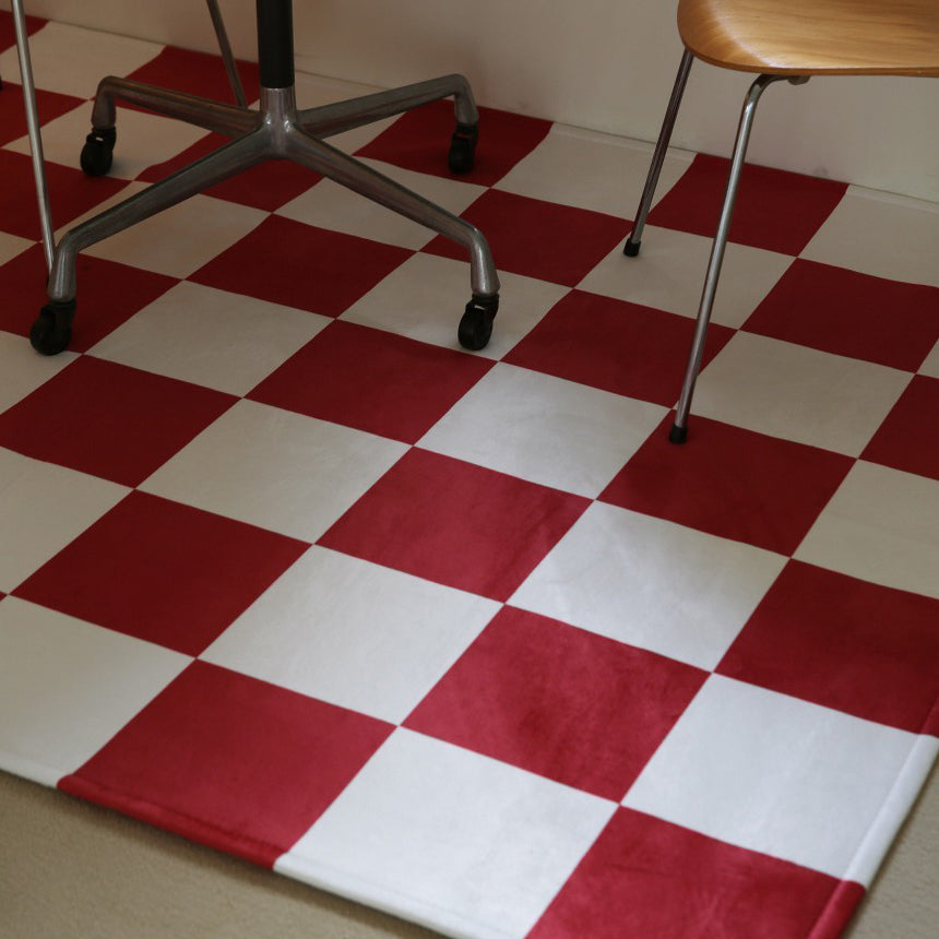 ビッグチェッカーボードレッドラグ|洗えるラグ