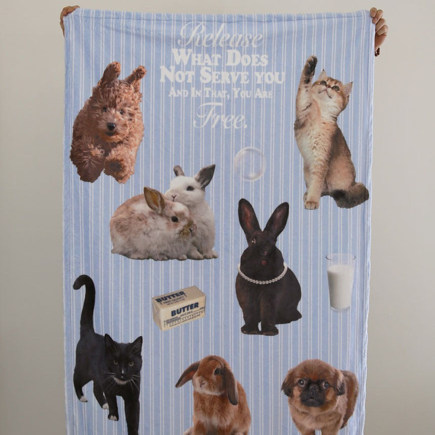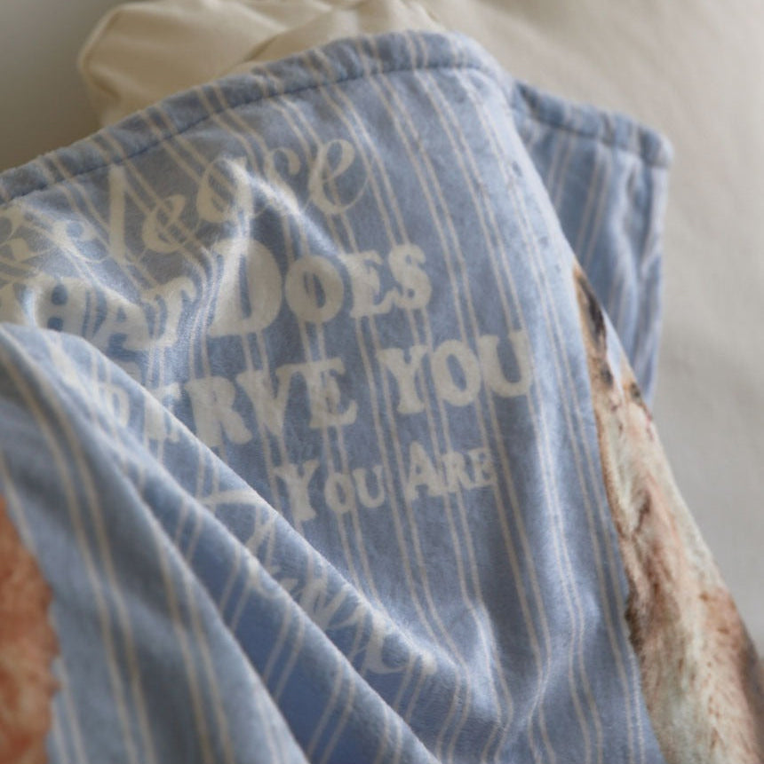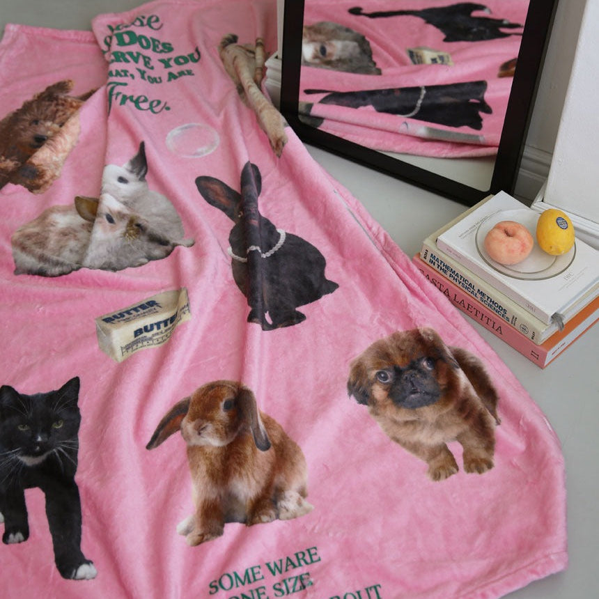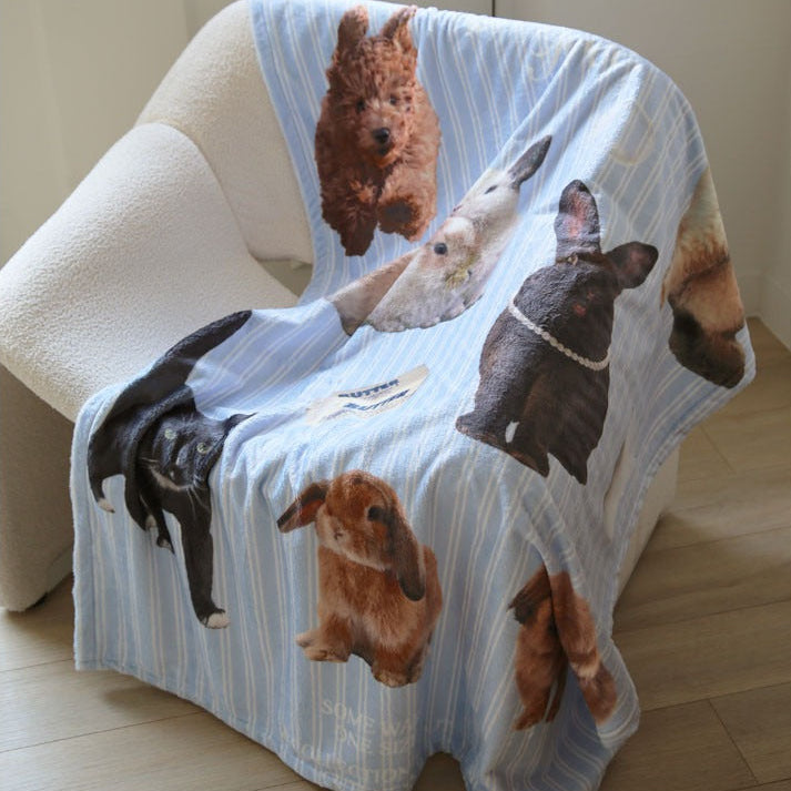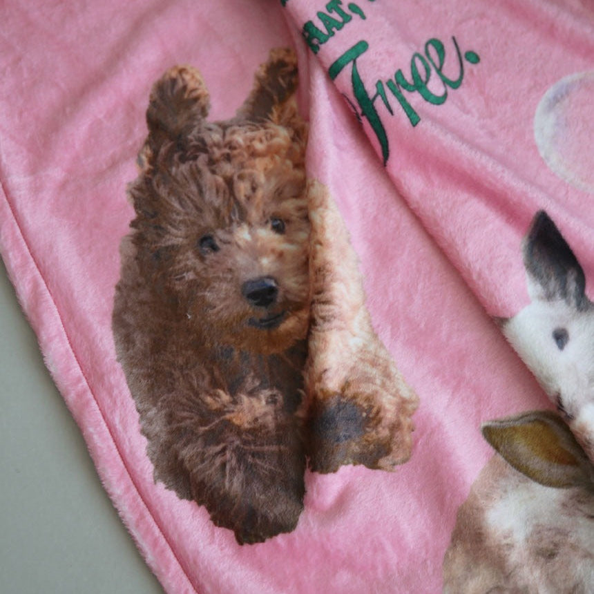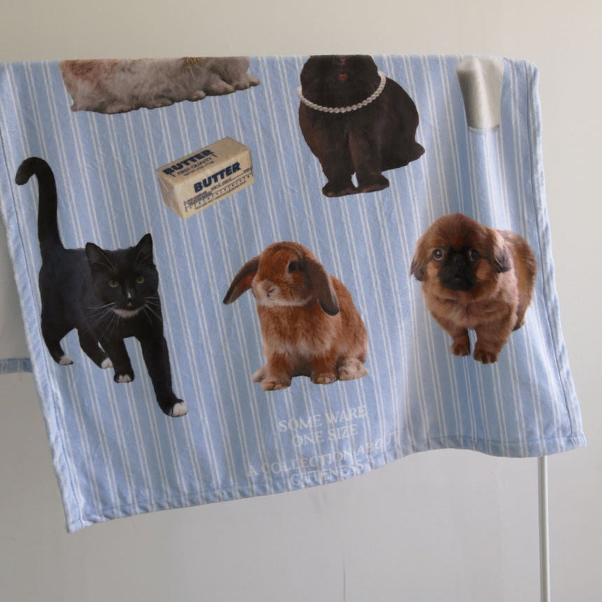 程よい厚みのあるコットン素材に、愛らしいプリントを施した多用途ブランケットです。
