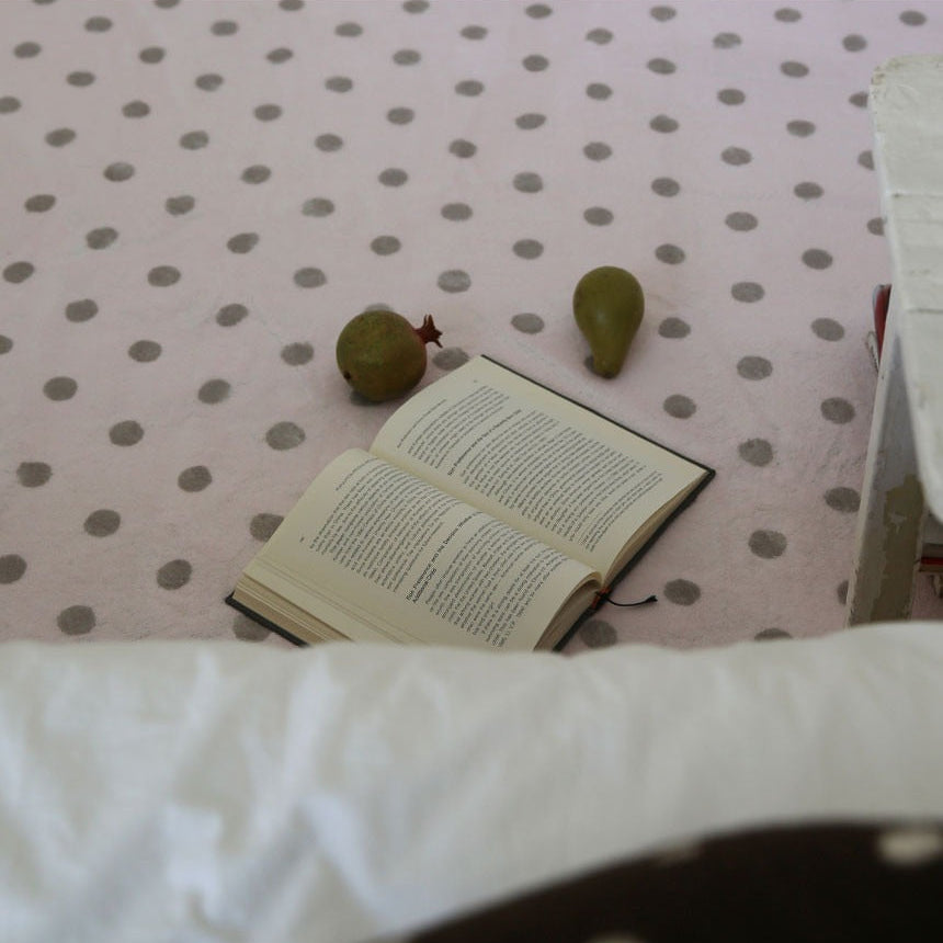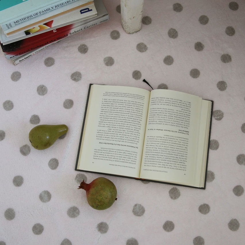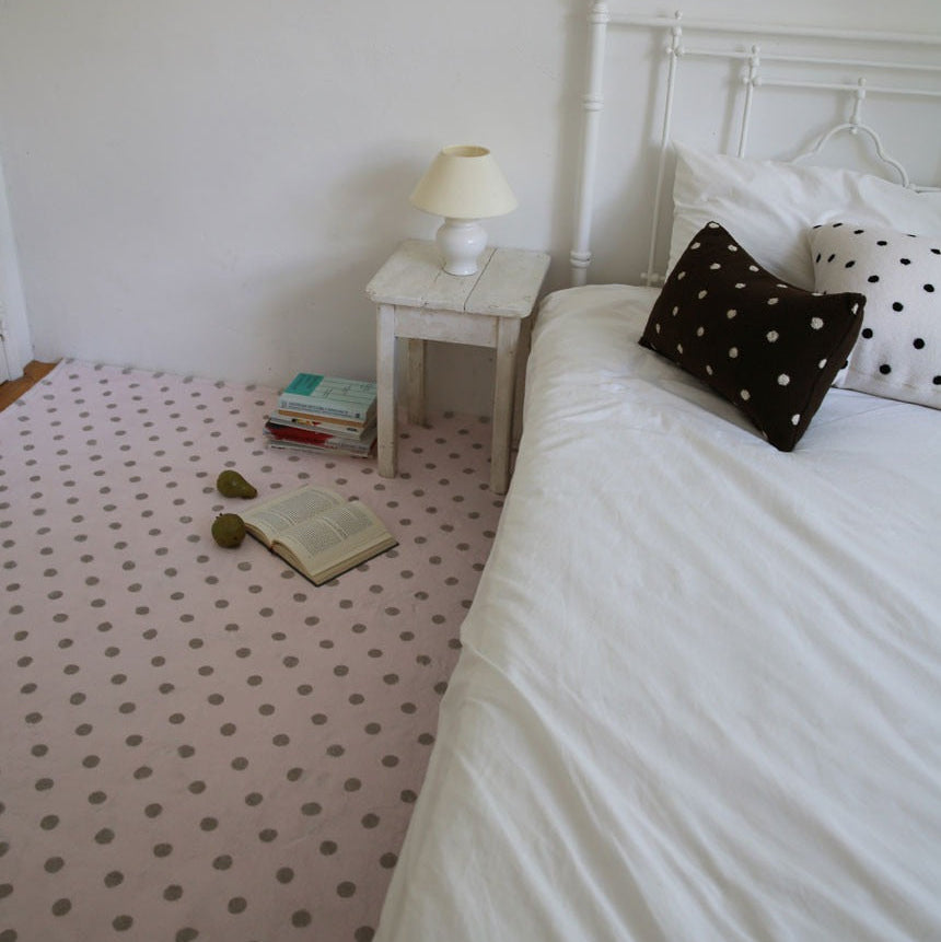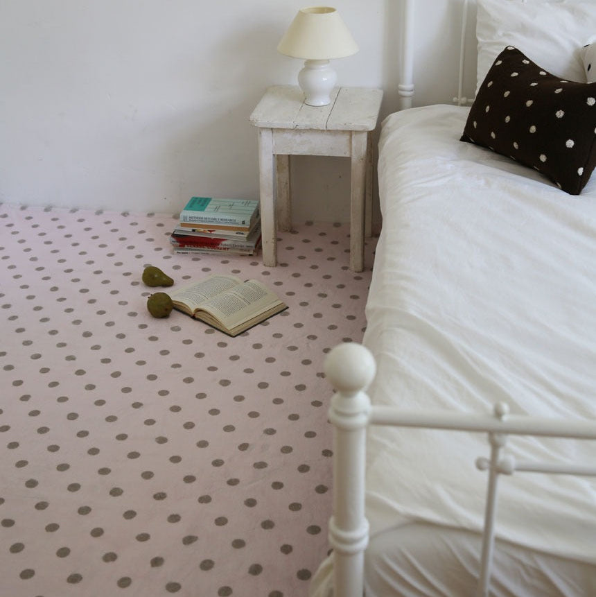 やわらかなピンクカラーに、やさしいブラウンのドットを組み合わせたラグ。