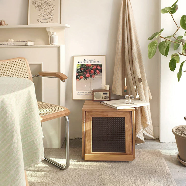 BENTAN(ベンタン)シリーズ|ウッド×ラタンの異国情緒漂う家具温かみのあるウッドカラーと、クラシカルなケインラタン(籐)扉の美しい組み合わせ。BENTANシリーズは、韓国ブランドならではの感性で仕上げた、自然素材の魅力が光るヴィンテージ調ラタンコレクションです。 上質でナチュラル、だけど印象的扉に施されたリズミカルなパターンが、空間にやさしく抜け感を与え、リビングや寝室、玄関などどこに置いても、暮らしにぬくもりとアクセントを添える一台になります。 異国情緒を、私の部屋に。どこかエスニックでボヘミアンな雰囲気をまとったBENTANシリーズは、ナチュラルインテリア・韓国風モダン・ミックススタイルにもぴったり。一人暮らしの空間にも、広めのリビングにもマッチするコンパクト設計×収納力が魅力です。