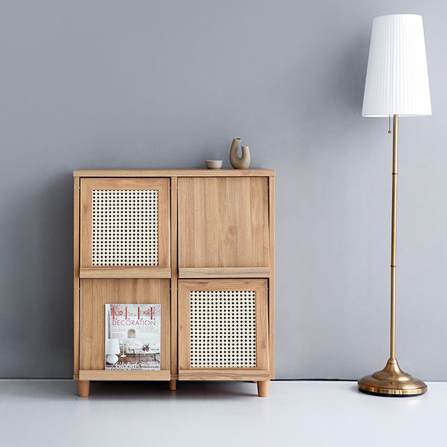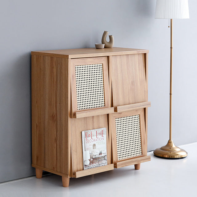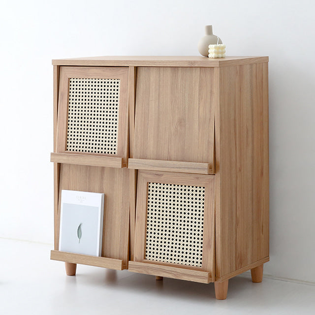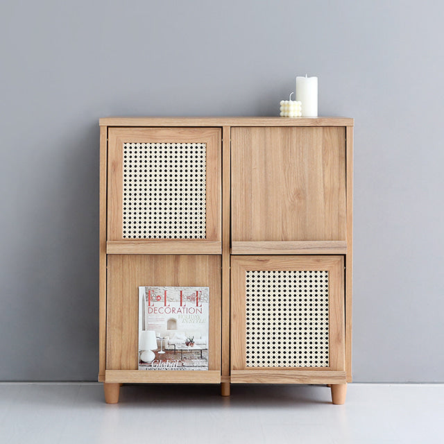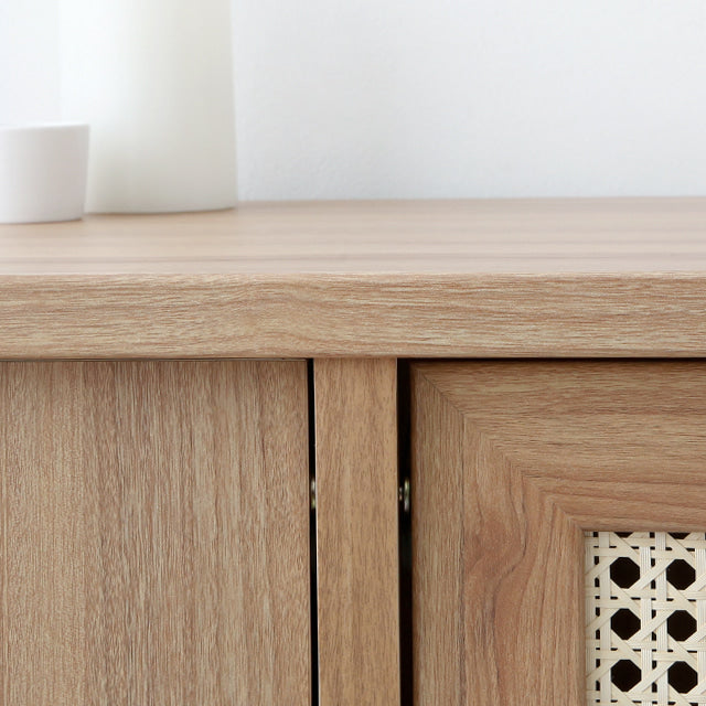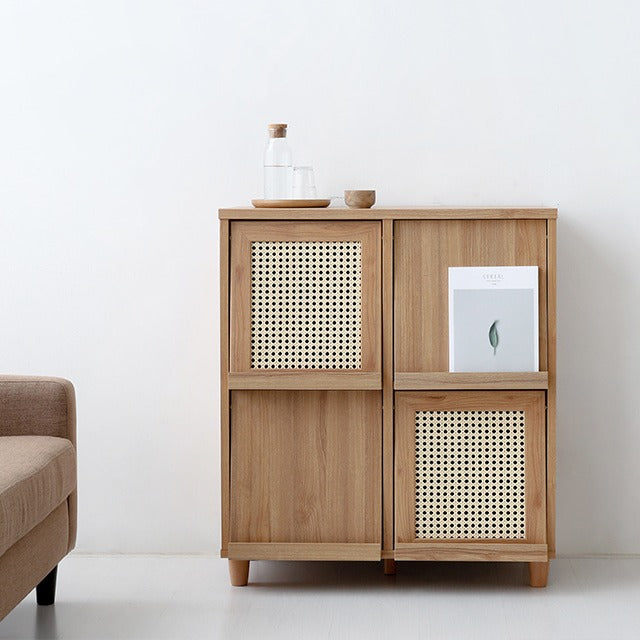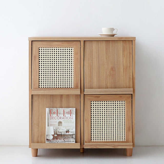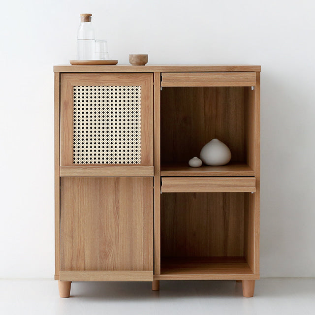 BENTAN(ベンタン)シリーズ|ウッド×ラタンの異国情緒漂う家具温かみのあるウッドカラーと、クラシカルなケインラタン(籐)扉の美しい組み合わせ。BENTANシリーズは、韓国ブランドならではの感性で仕上げた、自然素材の魅力が光るヴィンテージ調ラタンコレクションです。 上質でナチュラル、だけど印象的扉に施されたリズミカルなパターンが、空間にやさしく抜け感を与え、リビングや寝室、玄関などどこに置いても、暮らしにぬくもりとアクセントを添える一台になります。 異国情緒を、私の部屋に。どこかエスニックでボヘミアンな雰囲気をまとったBENTANシリーズは、ナチュラルインテリア・韓国風モダン・ミックススタイルにもぴったり。一人暮らしの空間にも、広めのリビングにもマッチするコンパクト設計×収納力が魅力です。