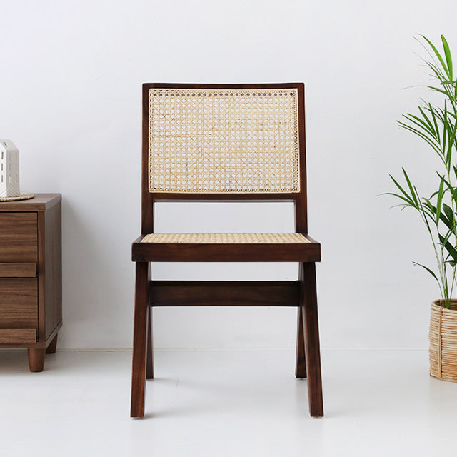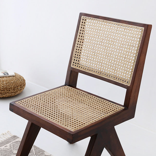 高級原木フレームと、熟練した職人が手編みで完成させたハンドメイドラタンが調和した、特別な一脚。