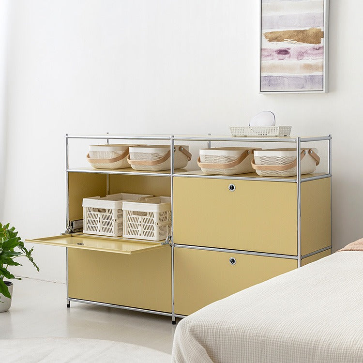 アンバランスな魅力のオープン型棚とドア型収納棚で構成されたアイテム。