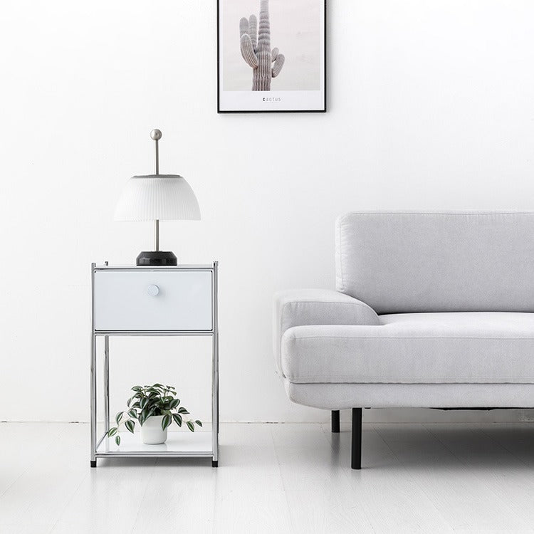 モダンさと実用性を兼ね備えたこのキャビネットは、ベッドサイドやソファ横など、どんな場所にもぴったり。