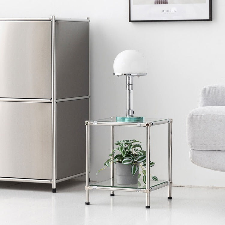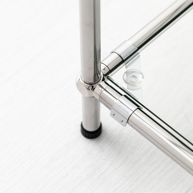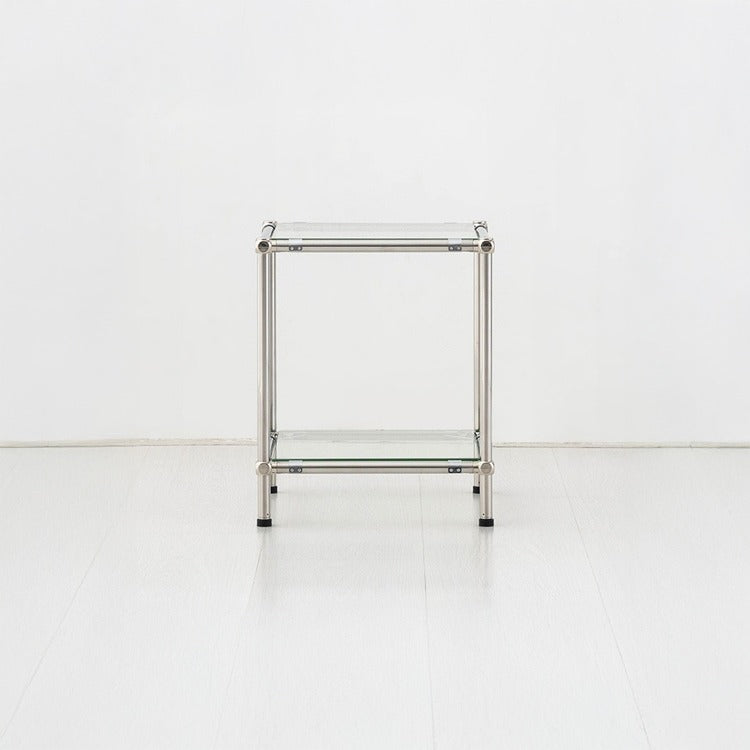シンプルで洗練されたデザインの、強化ガラス製サイドテーブル/サイドラックです。