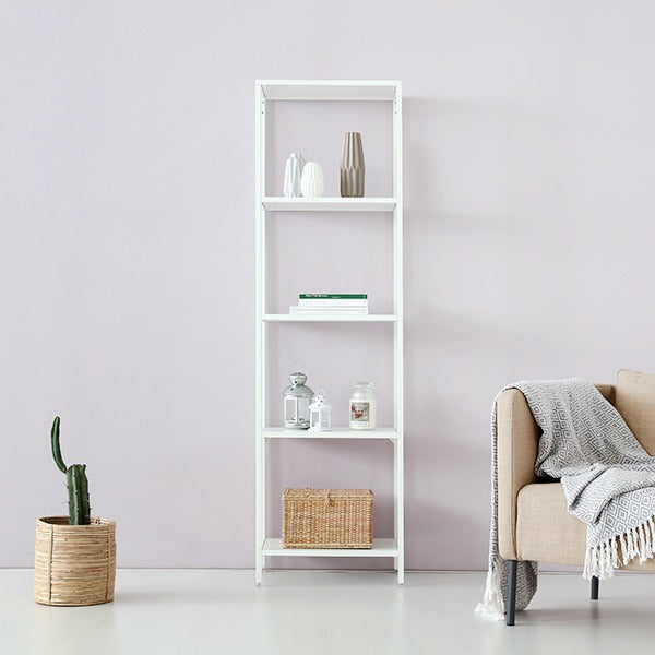 TETOSシリーズの5段シェルフは、すっきりとした直線的なデザインと高い実用性を兼ね備えた収納ラックです。