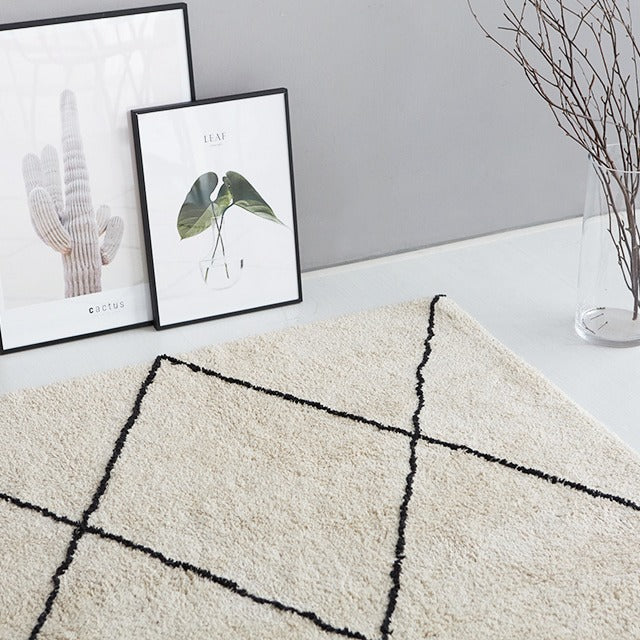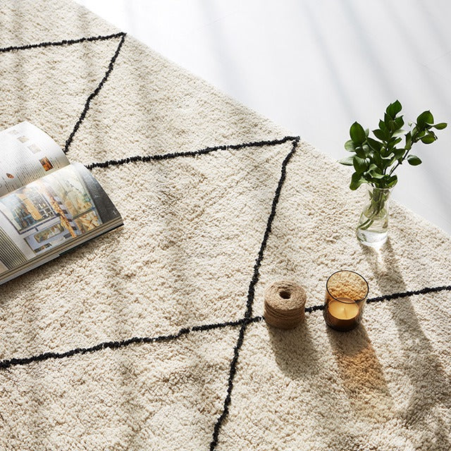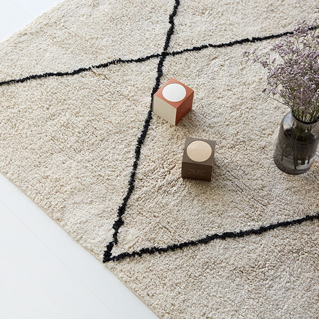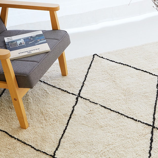 一本一本を丁寧に織り込み固定する「ハンドタフティング」技法で作られています。